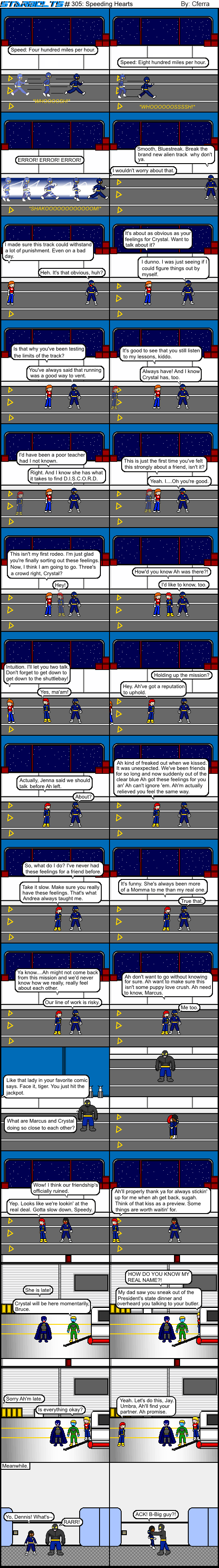 There's plenty of action this week as Lady Liberty and Wraith go head to head in order to draw out the Legion. I spent a bit of time designing new backgrounds for the park and a plaza in the city. The park bit is a bit where people can jog and the plaza has a nice place called "Piro's" in it. Hmm. I wonder what kind of goodies they sell there. Chances are it's a bakery. =D Bakeries are awesome.
