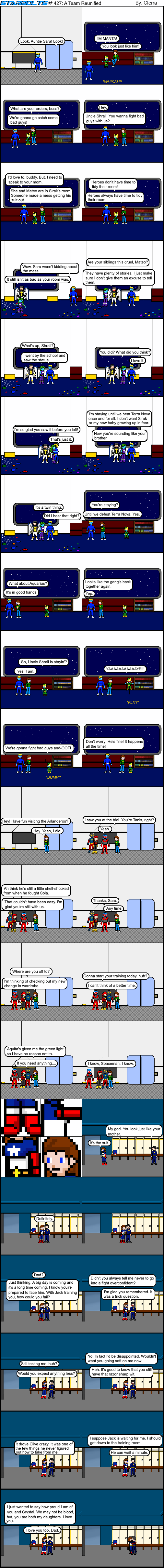 It's the annual end of the year comic and I thought I would mix it up a bit. The first sixteen panels or so are not really in canon. However, the rest of the comic is very much IN canon. As you can probably guess, the next storyline will involve time travel. Young Sirak has traveled back in time and is on a mission. What could his mission be? Who does he sense. What's going on? We'll find out in time. All I can say is that there is a time monster on the loose. Can three generations of superheroes stop him? I hope so!