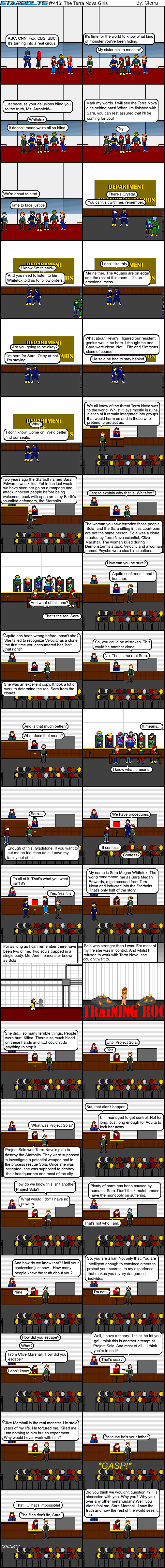 Four hundred comics ago, Sara disappeared and a clone was put in her place. The clone died and that set the stage for what has happened all these comics later. Now it has been revealed that not only is Clive Marshall a mad scientist who wanted to experiment on metahuman girls. He is Sara's biological father! I can't imagine the family reunion will be pleasant. I suppose people could have seen it coming. Who can say? The truth is finally out there and who knows what will happen next.