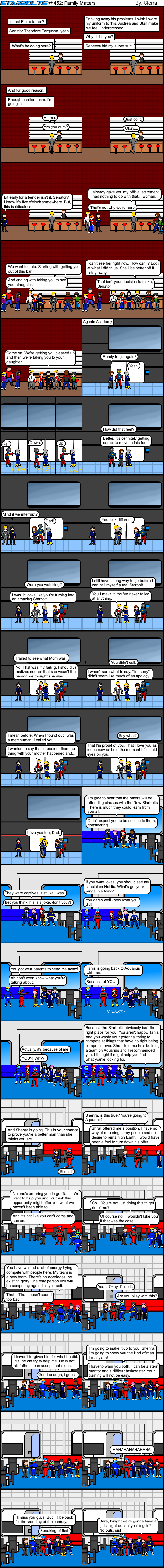 If you noticed, Kevin's parents aren't there. His mom was a teammate of theirs and his father killed her. It's too bad Sirak and Yeena J'arrsti weren't there. That would have made this scene awesome. I was tempted to put in the newest members of the Starbolts parents, Dendra and Nisson Odanta. Probably too soon for them to be involved in any Agents missions.