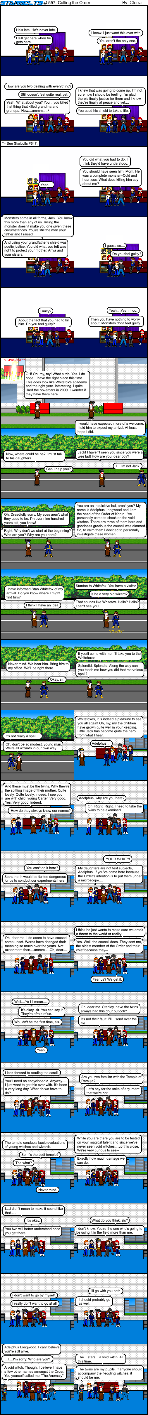 When the Order of Korun has to call in an eccentric old wizard, you know they are scared. Granted he is the leader and most wisest of all Jedi wizards in the Order. He's still pretty eccentric and perhaps doesn't know how to read a room. I get the feeling he probably will be disappointed by Crystal and Sara's "scrolls". The twins and everyone else will give the old guy a break. He's over nine hundred years old and he's wearing 3-D glasses for some reason. I haven't figured out why and it's not really a plot point. Sam and I just thought he should look like the 10th Doctor, David Tennant.