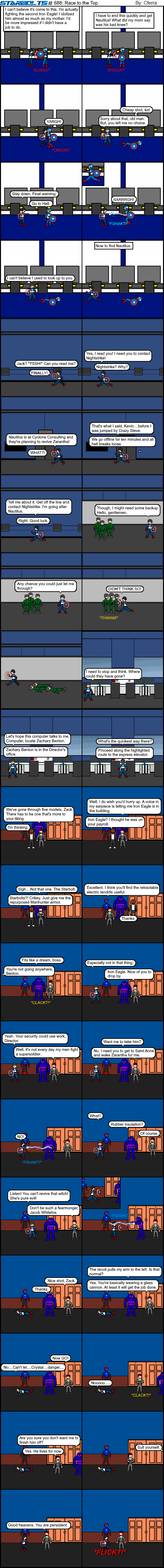 Meanwhile, it looks like Iron Eagle is taking a well deserved nap after fighting Jack. He's a bit older than him so he's not exactly in top form. Growing up Jack idolized both his mother and the second Iron Eagle. Too bad the second one turned out to be ten shades of crazy. This likely isn't the last we'll be seeing of him. Stay tuned for that and for Zarantha's return. When she wakes, the Starbolts are in danger and one red-haired Starbolt is going to be in her crosshairs!