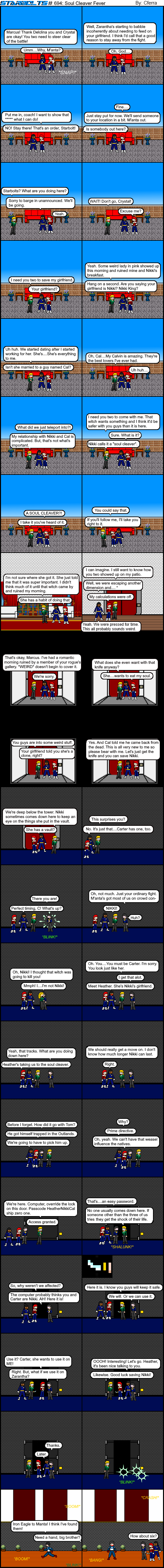 This week the Starbolts were introduced to Nikki's girlfriend, Heather. A while back I had her cameo in a comic when she showed up for an interview. She got the job almost immediately and no it wasn't because of her looks. Heather's really smart and Nikki sees that in her. In fact, she and Cal are probably the only ones who see past her beautiful exterior. Heh. Remind you of anyone?